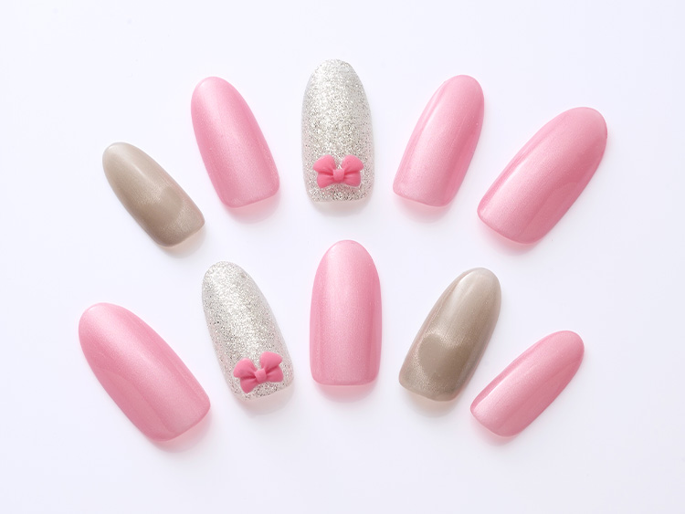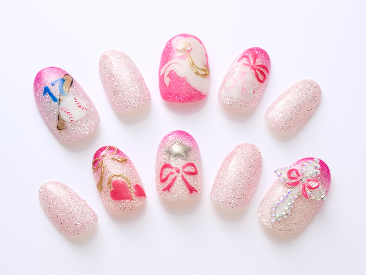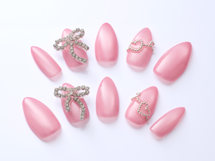 キラキラ輝く手元を見る度に前向きな気持ちになれるよう、大好きなモチーフのハートとリポンを組み合わせてデザインしました♡ピンクリボン運動を通じて、検診へ行くきっかけの後押しと、治療に向き合う方への力になれますように。
