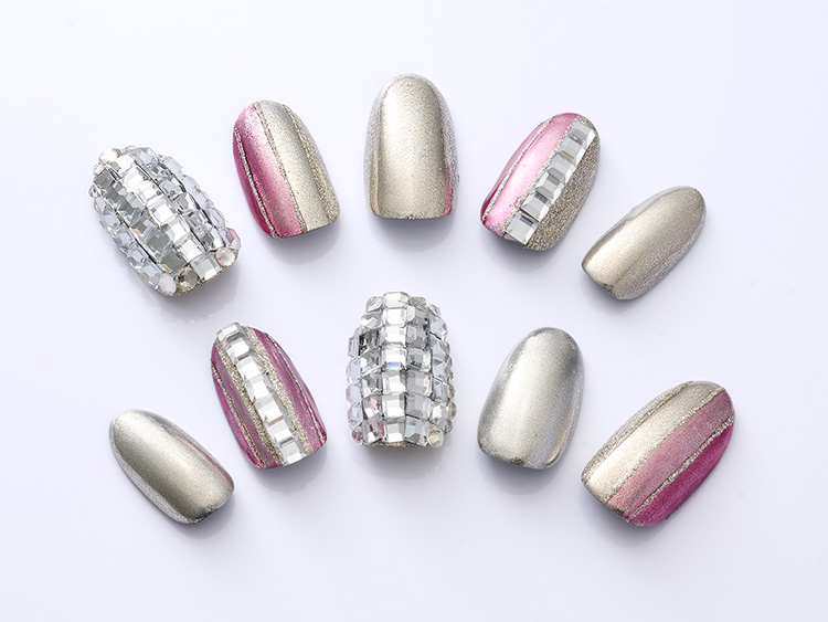 Y3K(3000年)をイメージしたスペイシーデザイン。輝くメタリック感、シルバー系、スクエアストーン、キラキラ感。明るく力強い未来が開けるように願いを込めて!