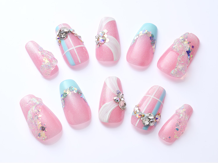 私もネイルが好きで、いつもジェルネイルをしています。クライミングをするのでパーツを付けたり、立体的なネイルはなかなか出来ません。いつかお休みのときに盛り盛りなネイルもやってみたいなと思ってデザインしました♡