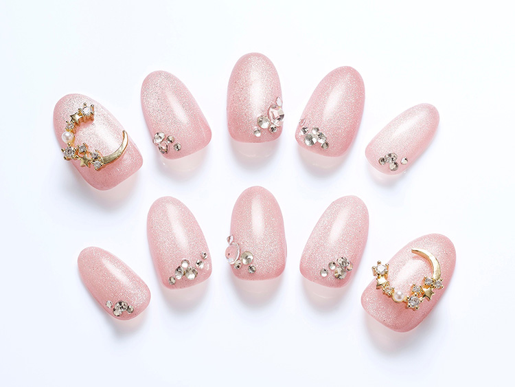 私が舌がんの手術を受けてから、早いもので6年半という年月が流れました。改めて振り返ってみると、哀しみ・喜びに満ち溢れ様々な感情に揺さぶられ続けた日々でした。再発・転移などに脅かされながらも、命を繋いでいただいたという安堵感の反面、生き残った罪悪感にも苛まれ、自分を責めてしまう心との闘いも。でも人生に悔いることなく、今の自分を受け止めて、周りへの感謝の気持ちを忘れずに。一番辛かった時の気持ちに戻って、一日一日を大切に生きていこうと思います。今回のネイルは病後の私が人生において、歌手として、初心に還り歩んでいる気持ちを表現しました。シンプルでやさしい気持ちを忘れず、夜空で人々を照らすお月さまのように過ごしていきたいです。